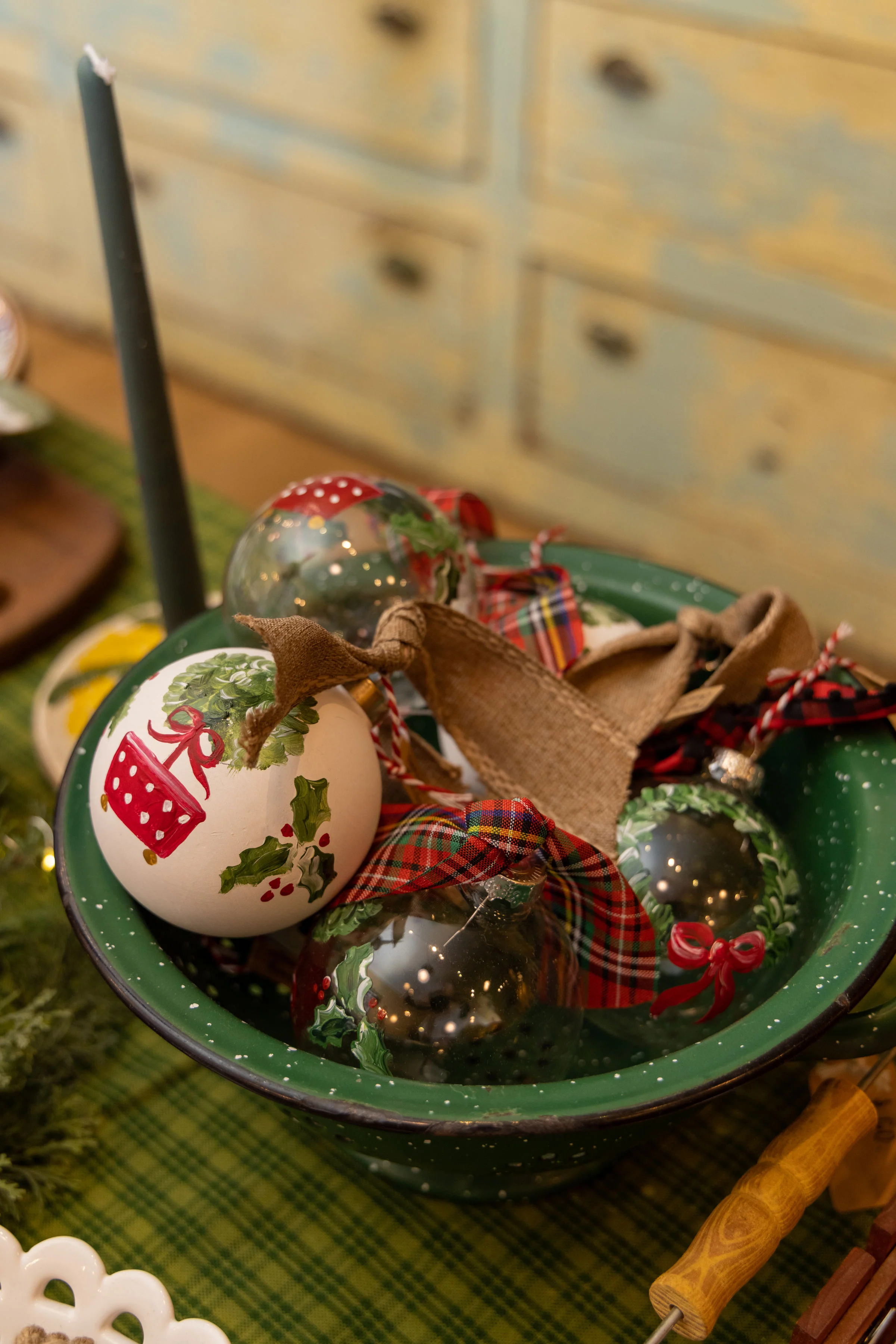 materials glass ornament, glass paint, ribbon