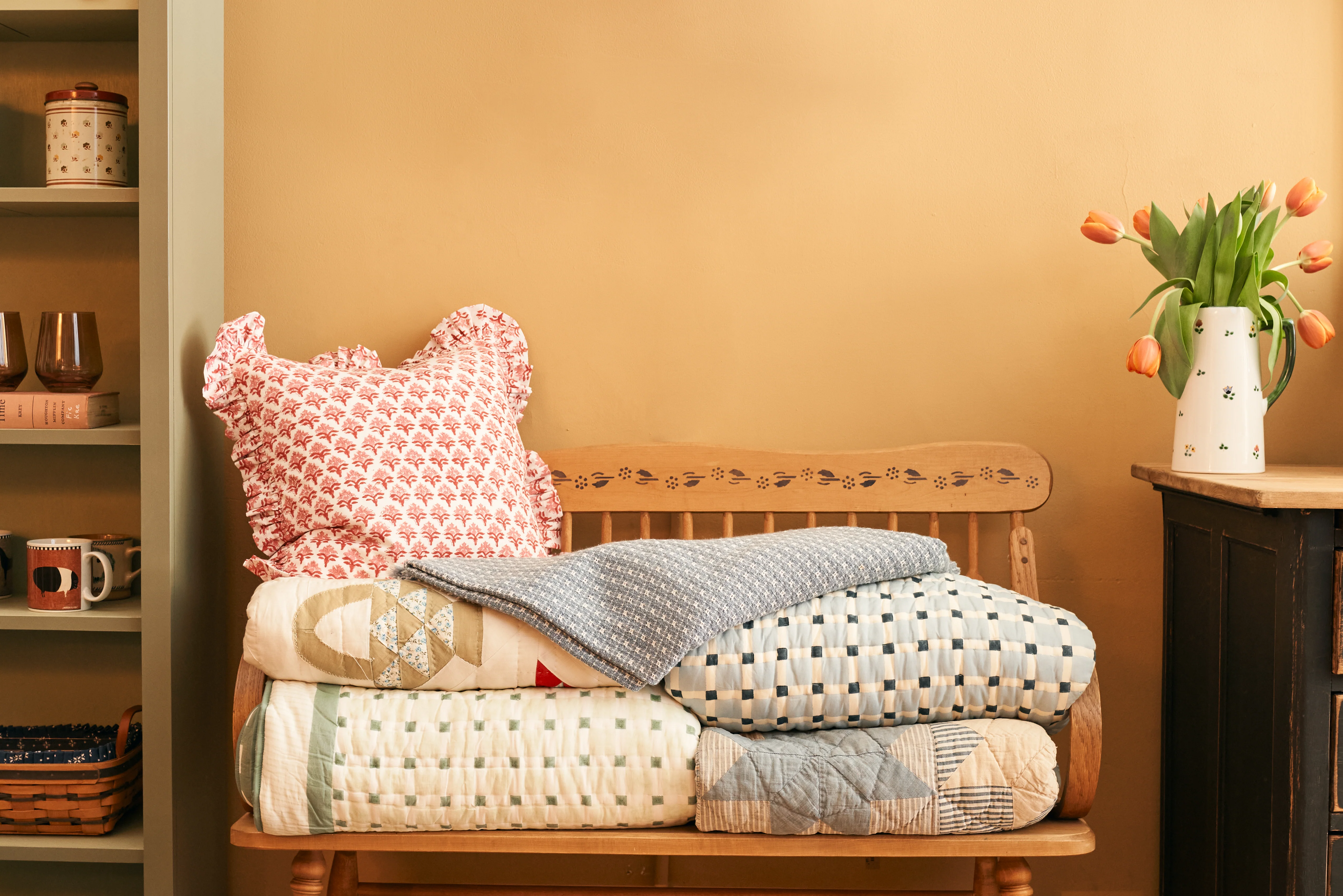 Red Flower Ruffled Pillow